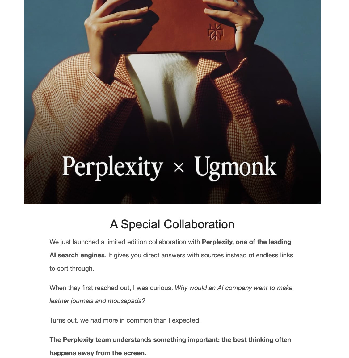 Et mĂȘme Perplexity AI, acteur majeur de lâintelligence artificielle, qui collabore avec Ugmonk pour crĂ©er⊠des carnets.